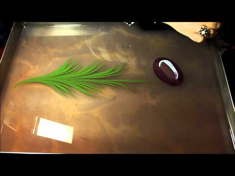 Seguidamente, el marmolero reúne sus pinceles de crin de caballo para los detalles, las agujas para depositar el tinte en el agua y peines de fabricación casera para dibujar sobre el tinte. El agua se deposita en una bandeja ligeramente superior en tamaño al papel que se vaya a usar.
